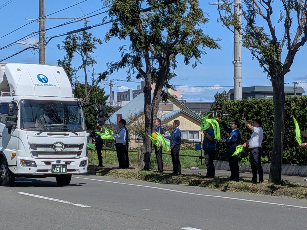 2025年 『秋の全国交通安全運動』実施に伴う啓発活動について 2025-09-19 04:15:00 UTC 「秋の全国交通安全運動(9/21~30)」の実施に伴い、9月19日(金)に交通安全啓発活動を実施しました。 当日は各センターの社員・アルバイトの皆さんが、出発するグループ会社やパートナー企業のドライバーさんに向けて交通安全の旗を掲示して交通安全を呼びかけました。また隣接する国道337号線を走行する一般のドライバーさんに向けても交通安全を呼びかけいたしました。 アイアイテーは全道のスーパーに食品の輸送をしている食品物流インフラとして、安心していただけるよう安全を第一にサービスを展開していきます。